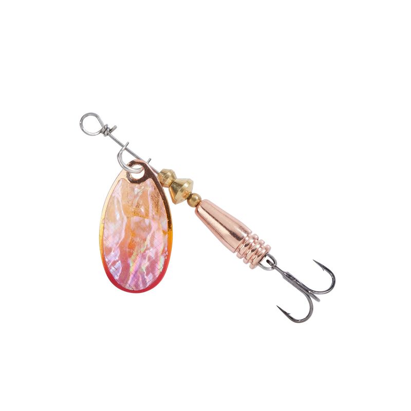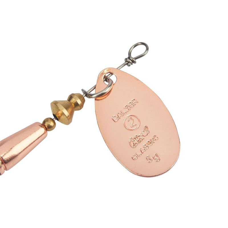 Ein besonderes Highlight dieses Spinners ist das raffinierte Hakenwechsel-System, das es Anglern ermöglicht, im Handumdrehen zwischen dem beiliegenden Drillingshaken und Einzelhaken zu wechseln, und so für Flexibilität und Effizienz beim Fischen sorgt. Die farblich angepasste Rückseite in attraktiven Ausführungen – Silber, Kupfer, Gold oder Schwarz – sorgt dafür, dass Vorder- und Rückseite optimal harmonieren und somit noch reizvoller auf Fische wirken.