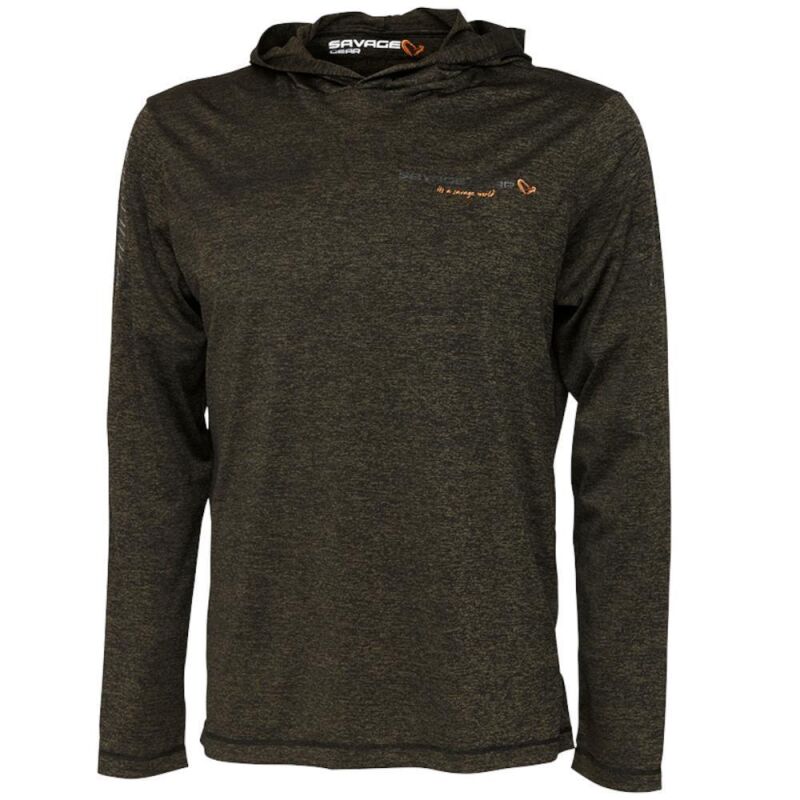 Mit diesem bequemen und hoch atmungsaktiven Kapuzenpulli in der beliebten Farbe Army Green Melange bist du bei Deinem nächsten Angelausflug bestens ausgerüstet.