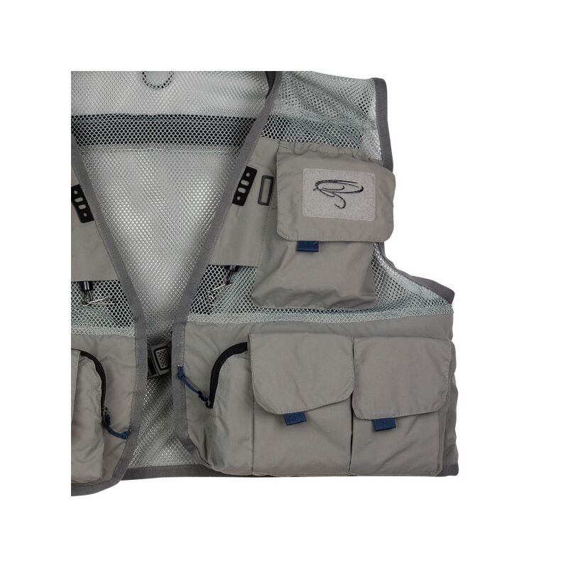 Die Current Mesh Weste sorgt bei Fliegenfischern fu¨r Begeisterung. Durch das verwendete Mesh-Material ist der Tragekomfort im Sommer wie im Winter sehr hoch. Die 16 verschiedenen Taschen sorgen dafu¨r, dass Sie das am Wasser benötigte Zubehöhr auch sicher unterbringen. Das Material der Taschen ist robust und pflegeleicht. Diese Weste bietet fu¨r ihr minimalistisches Design unglaublich viel Platz.